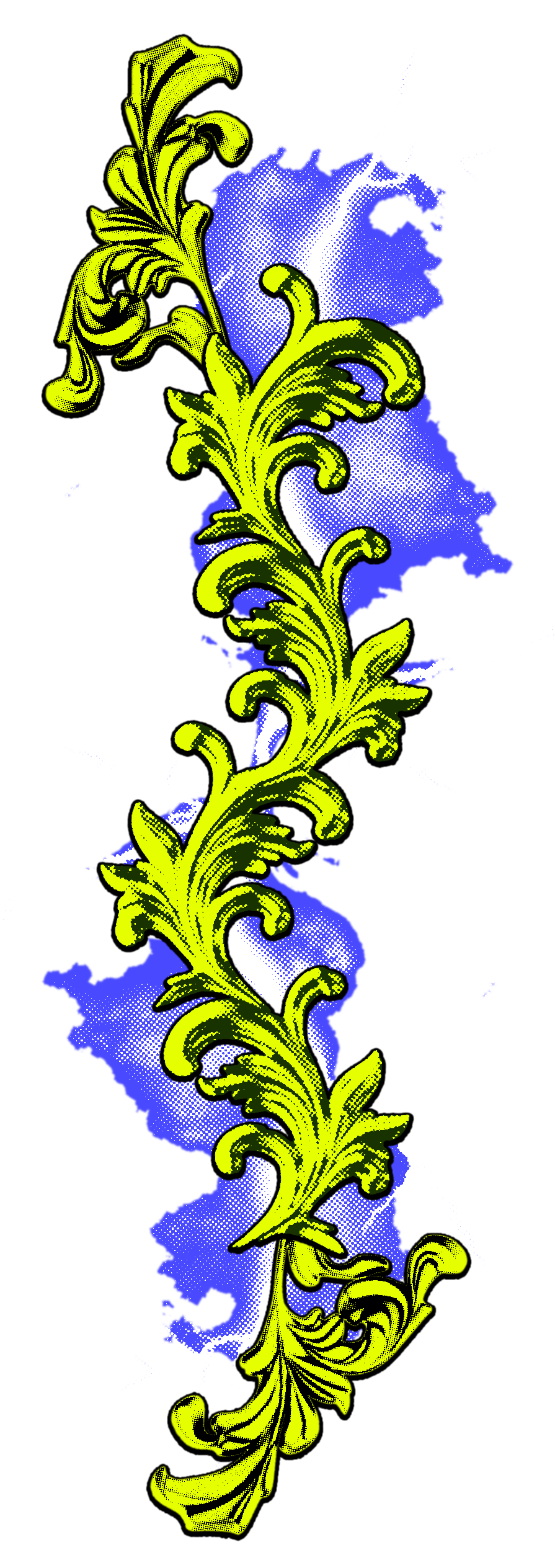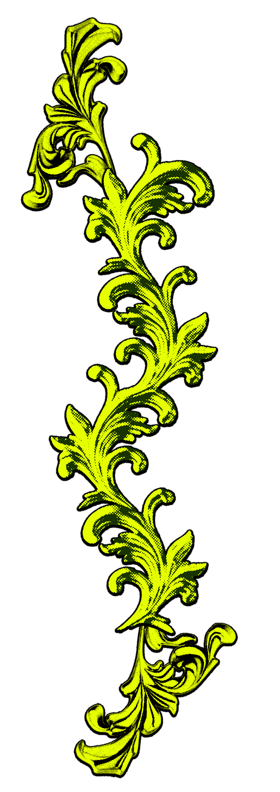 The first and major concern I had when I first looked at the brief was, how am I going to do those squiggles down the side? I knew it had to be something regal and, as I am not someone who draws particularly well, I was limited in my options. I trudged through various stock image sites with search terms like “Rococo Ornamentation” and “Baroque Decoration” and assembled a large collection of elements. Then, I just stitched a handful together and processed to make them cohesive (and yellow). I toyed with a halftone lightning effect behind them, but the client knew what he wanted, and it wasn’t that.
